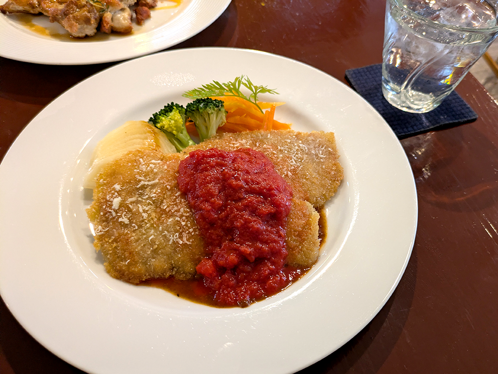 本日のランチは大きなカツレツが2枚ありましたが、トマトソースでさっぱりいただけました。