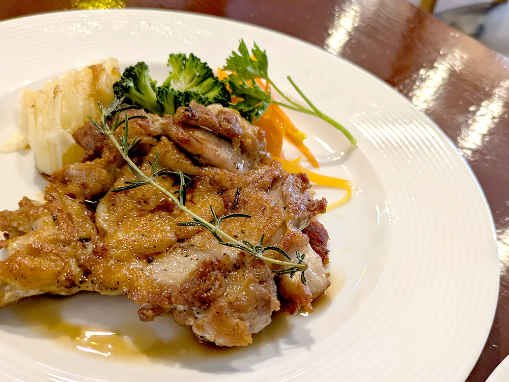 チキンはローズマリーがふわっとかおり、ホットペッパー醤油ソースで軽く食べられます。