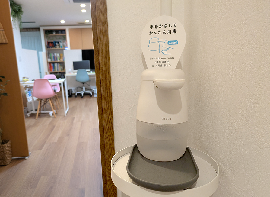 玄関入り口には手指用のアルコールもご用意しておりますので、ご利用ください。
